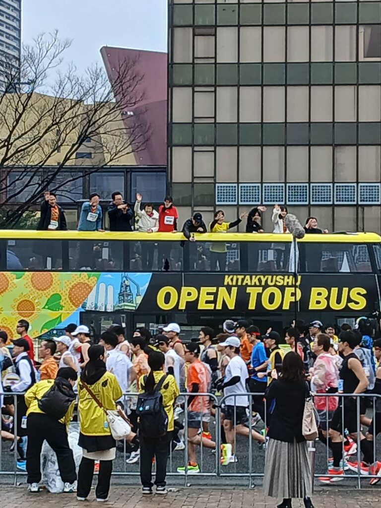 今年は、観客側も見どころが沢山で、市役所前には3月から市内を走る「オープントップバス」や小倉城も背景に見える鴎外橋のふもとにはKOKURAのモニュメントがありフォトスポットになっていました。
