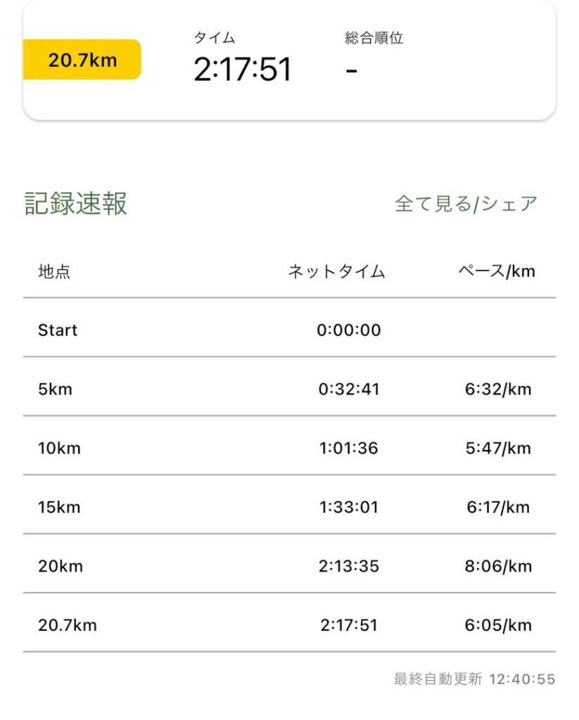 マラソンの結果は昨年よりも10分早い2時間17分!!